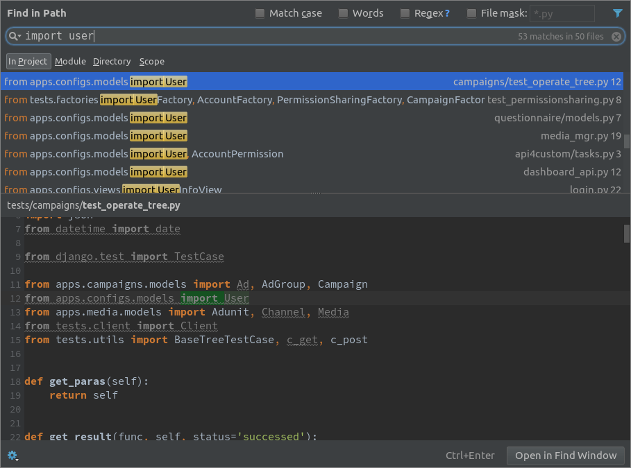 Pycharm中的快捷键Select All Occurrences就等同于sublime里的全选所有符合搜索的结果(ctrl+回车)!