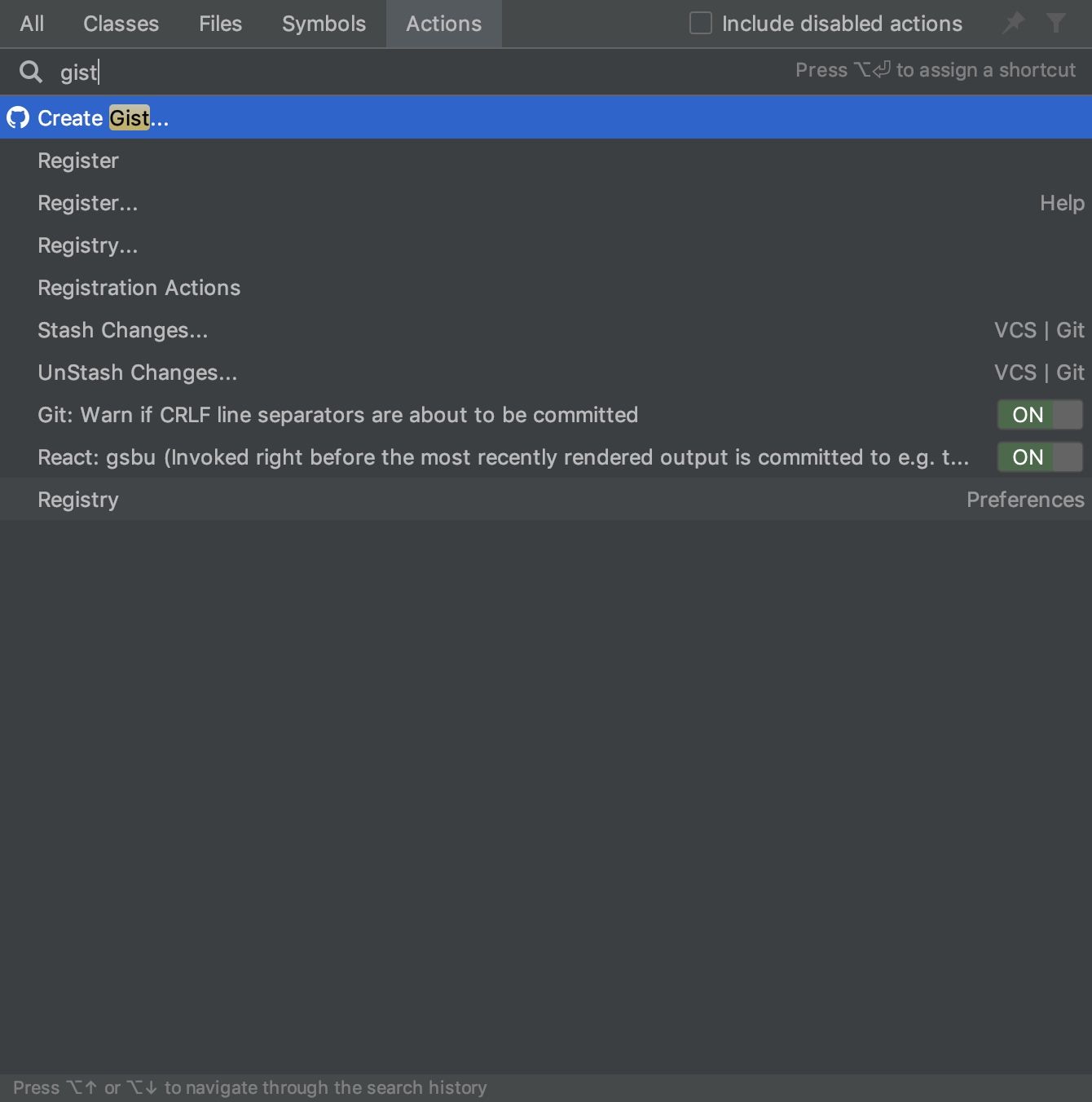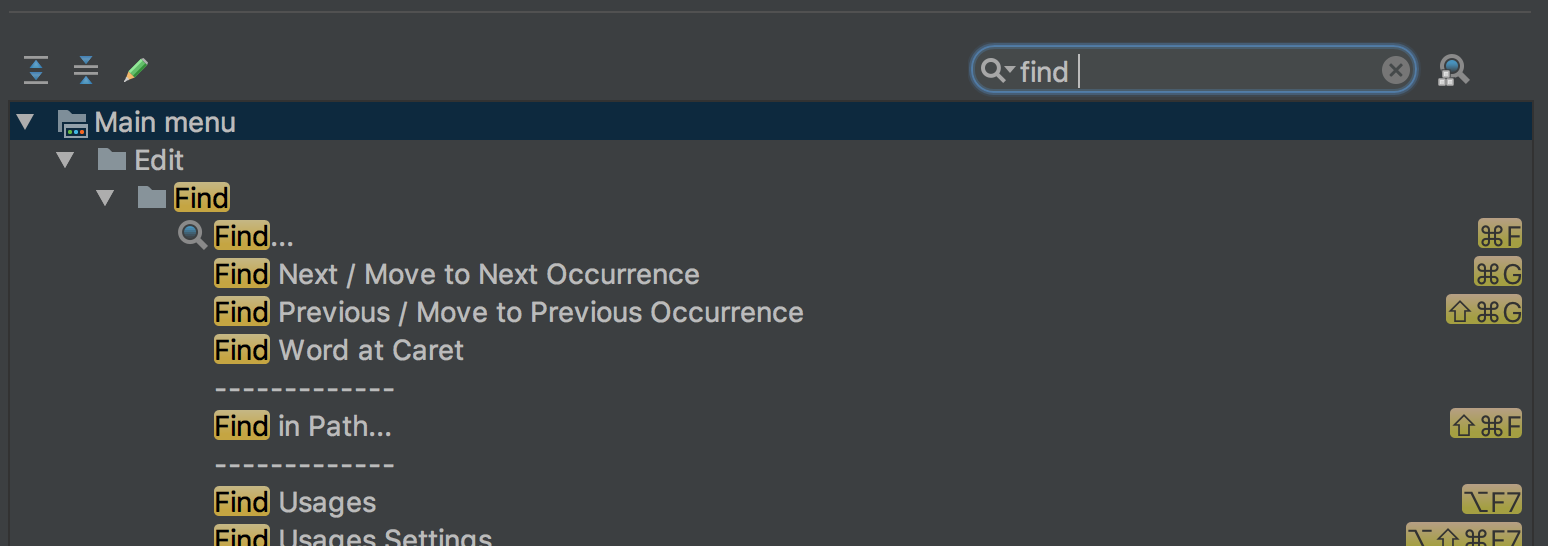 Ctrl+Shift+A | ⇧⌘A: text –> 执行一些action(git pull/commit等等等等), 潜力无限, 有待开发.