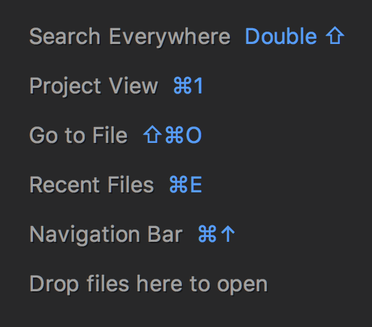 Shift(Double-press): 双击shift, 我每天使用频率很高的一个快捷键, 可以按最近使用过的文件名, 类名, 方法名等去搜索定位!