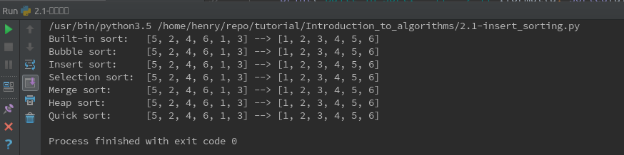 print("Insert sort: {} --> {}".format(a, insert_sort(list(a))))