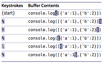 :onoremap p i(: dp(d: action, p: movement):onoremap b /return<cr>: db:onoremap in( :<c-u>normal! f(vi(<cr>: 当光标在print foo(bar)括号之外时, 输入cin(.:onoremap il( :<c-u>normal! F)vi(<cr>: “inside last parentheses”