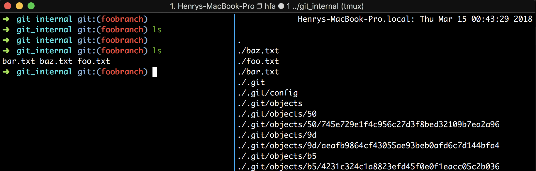 git checkout -b foobranch → 创建了一个文件: ./.git/refs/heads/foobranch