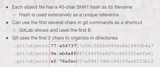 SHA1一共有40位, 前两位作为文件夹, 一般使用前八位作为shortcut (下图红色方框中).