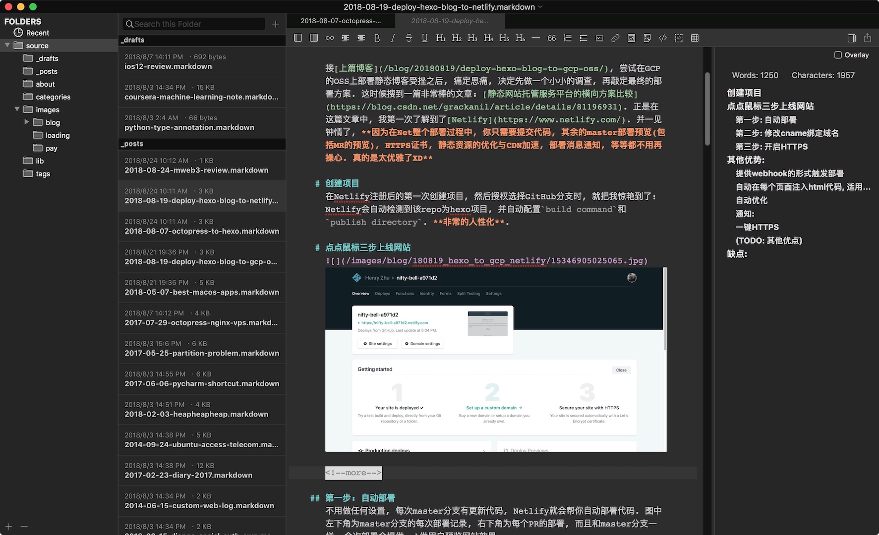 _draft和_posts目录, 而且插入图片也很方便(配好路径后, 只需要一键粘贴就行了) - 表格的实时编辑, 这个真的是太酷了.