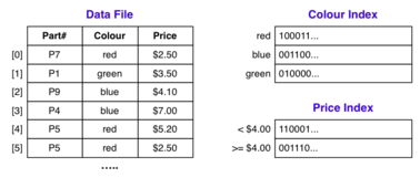 不多解释了, 看图. 所以查询颜色为red, 并且小于$4的所有记录, 只需要对100011和110001做与操作就可以了, 太酷了.