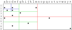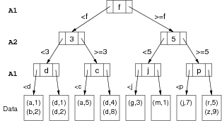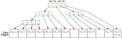 将下边的两张图联系起来看就明白了, 实际上就是对一个二维空间按条件做了划分. 查询时也能按条件快速查找.