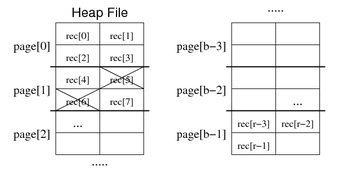 题外话+1: 对于乱序存储, 每条记录(tuple)直接存在一个文件(heap file)中. 删除记录: 标记删除而不是物理删除. 添加记录: 在文件的最末端插入一条记录.