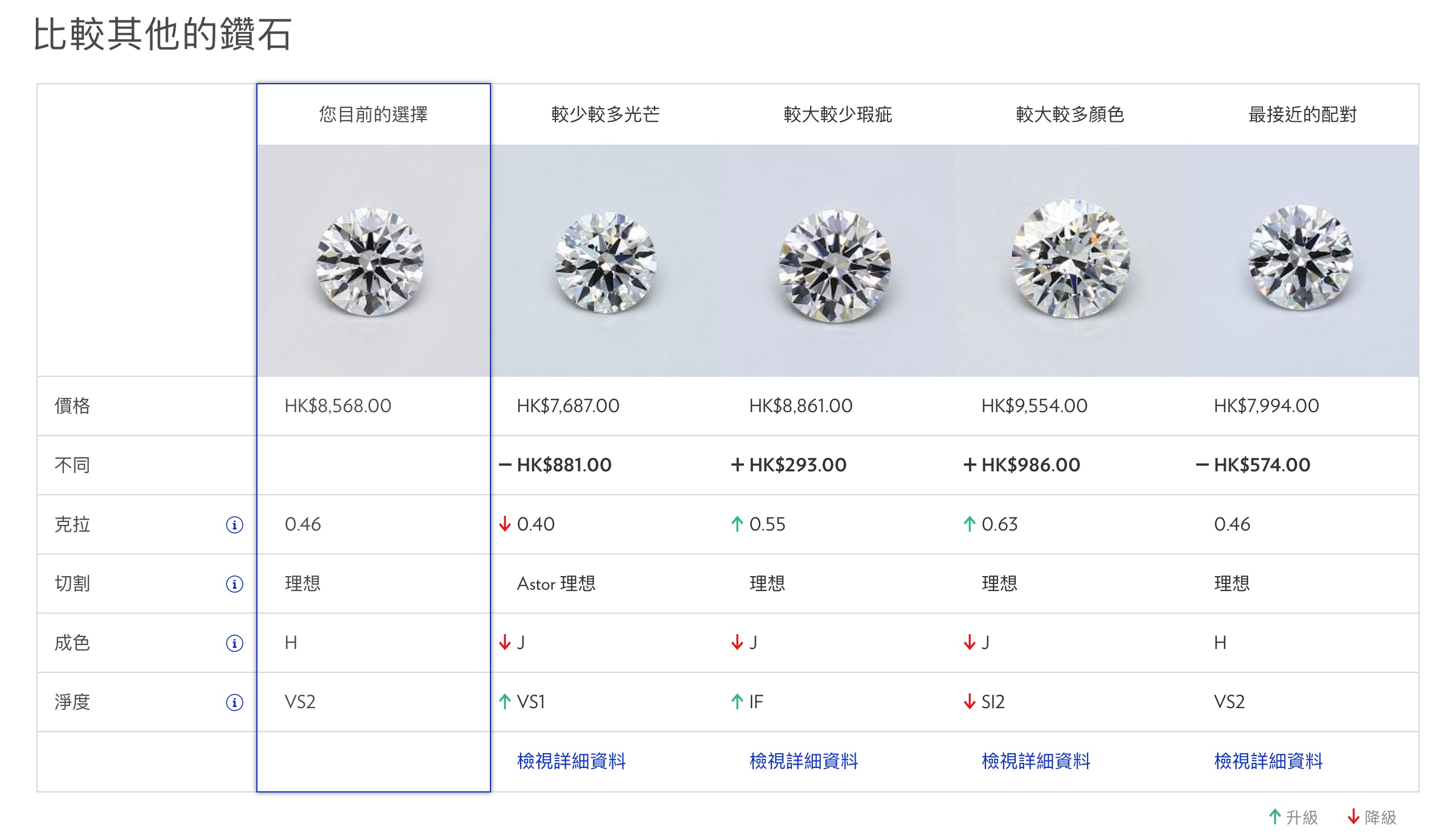 | 切工(Cut) | 切工必须 3EX(也就是筛选项的切割、抛光度、对称度) |