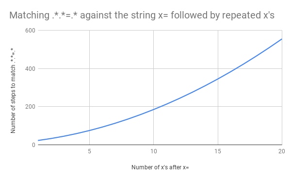 总而言之,就是随着字符串的增加,正则匹配的时间复杂度爆炸增长,最终导致 CPU 资源耗尽: