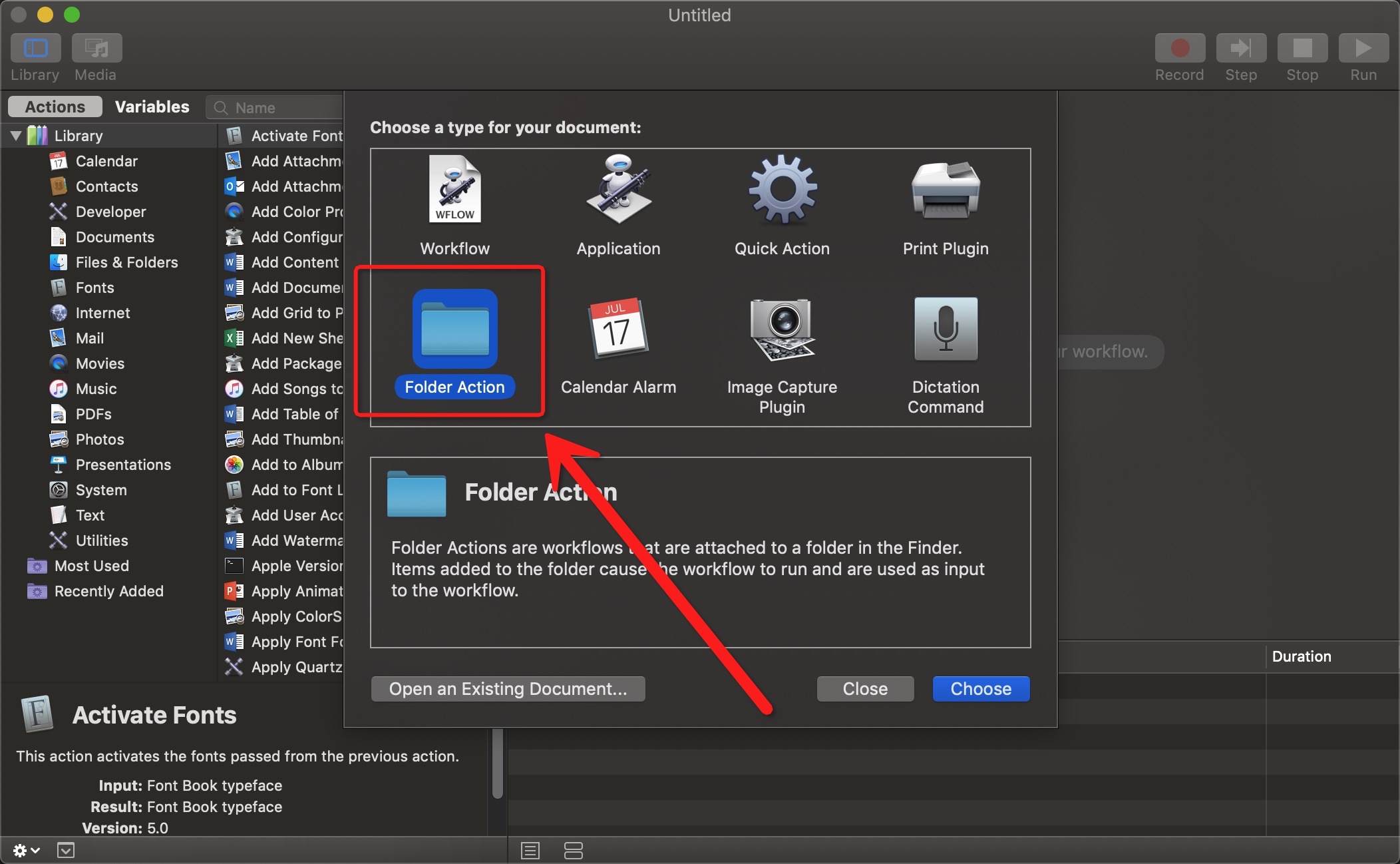 选择 “Folder Action”: