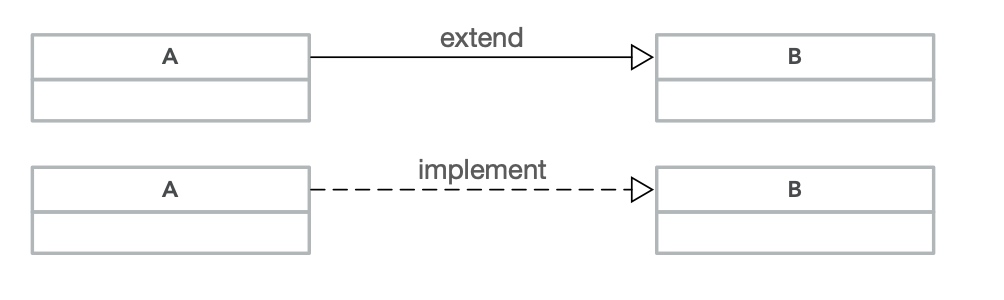 网上针对以下两种的叫法五花八门,但如果直接叫 extend 与 implement 就比较好理解了: