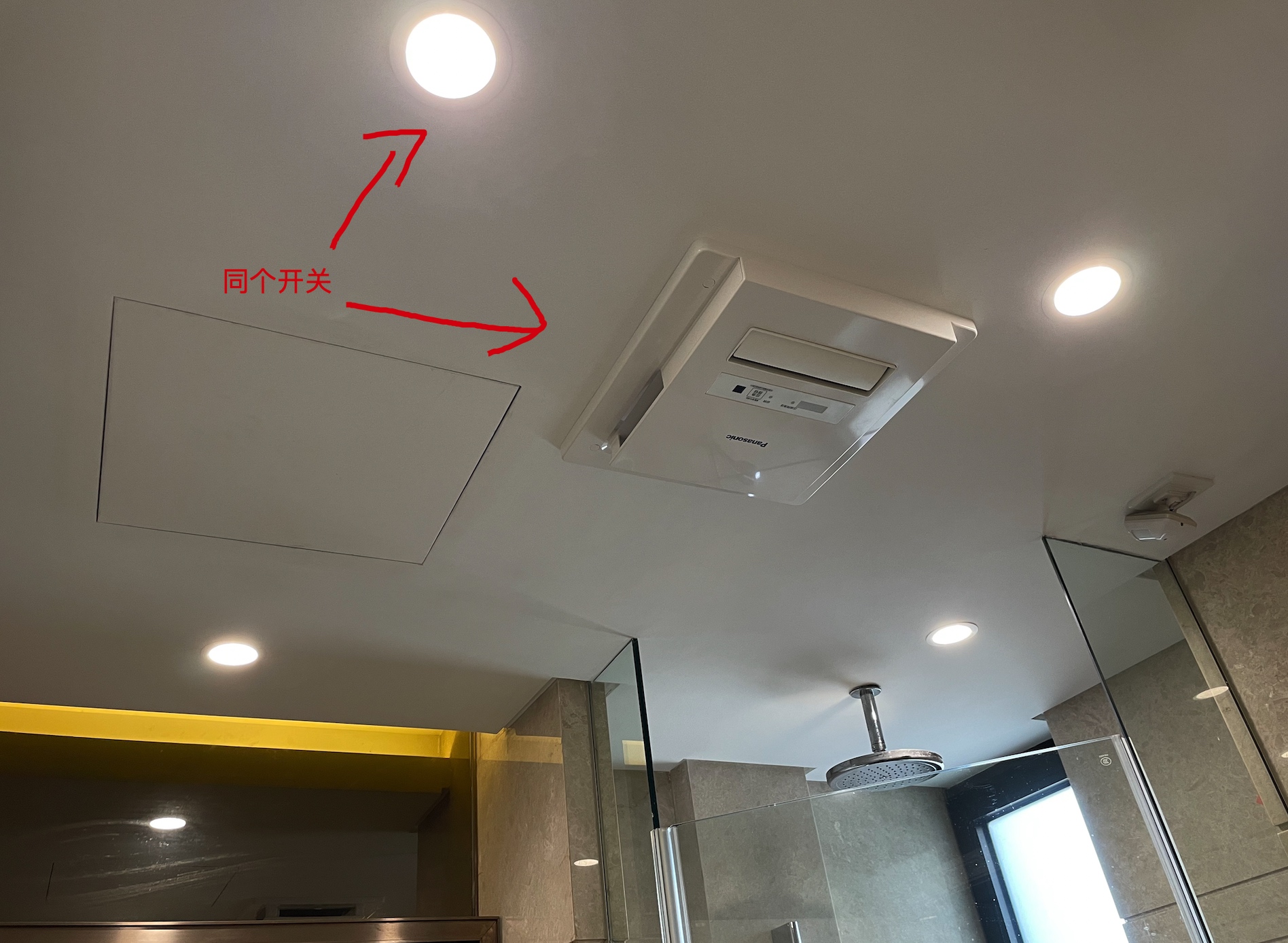 比如我们的厕所,上个月师傅在安装浴霸时,无法找到电源,最终只能将浴霸与厕所的筒灯串联。也就是说如果关闭筒灯的开关,浴霸就断电进入离线状态无法再用遥控器控制 0.0