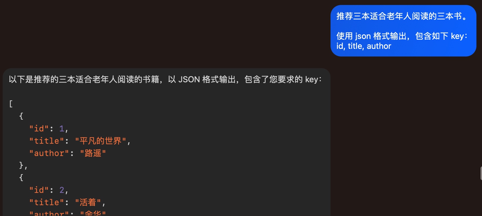 不难理解,如下图指定生成的内容通过 json 等格式结构化输出: