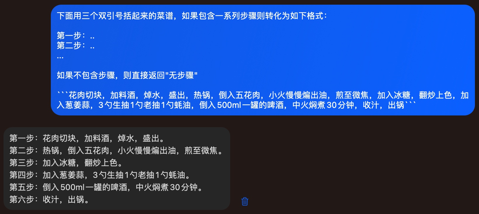 当模型给出错误结论时,用户可引导模型将任务分解成若干步骤,优先给出自身的回答,再进一步对比判断结论是否正确。