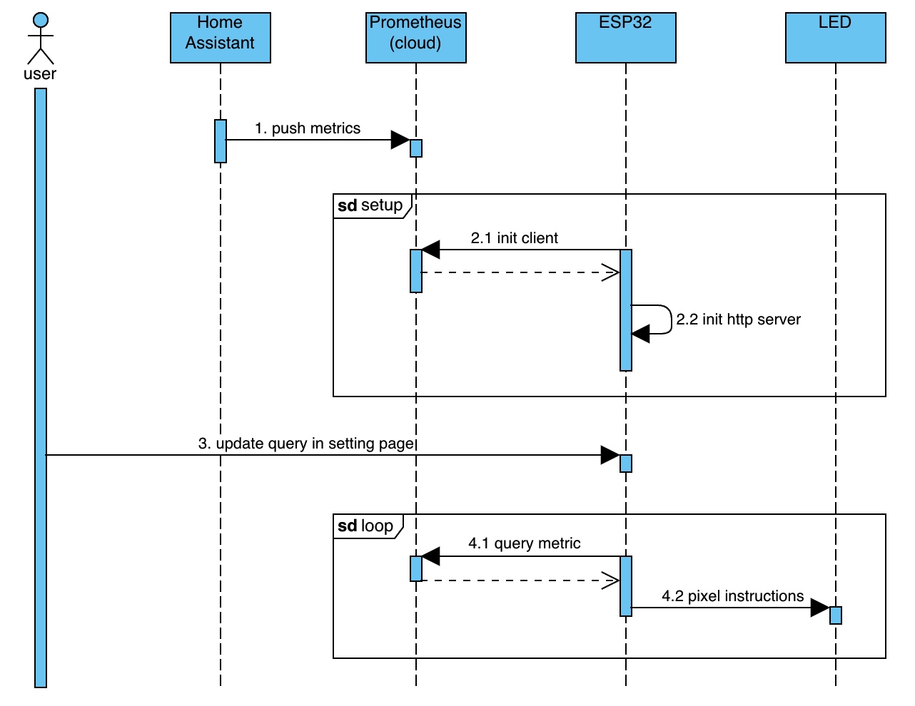整体链路:小米温度计 -> Home Assistant -> Grafana Agent -> Grafana Cloud -> ESP32 -> LED