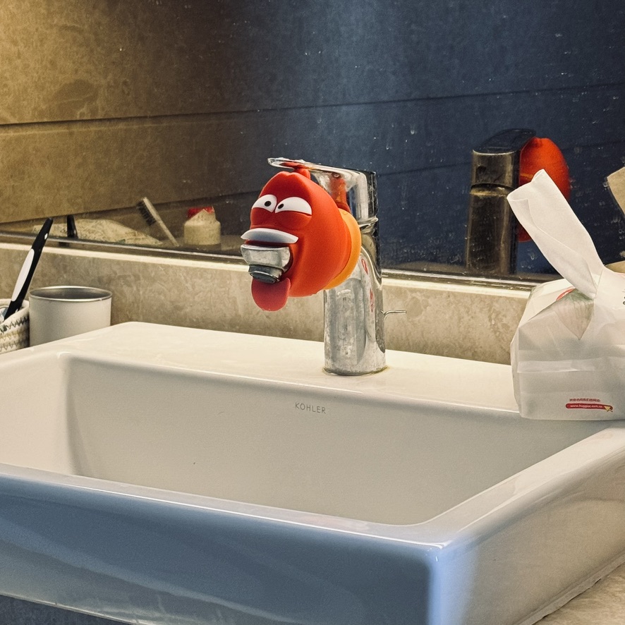 有一天宝宝的脚上出现一道划痕,猜测大概率是洗 PP 时蹭到了水龙头。于是第二天看到水龙头上出现了一个奇怪的东西 😂😂😂