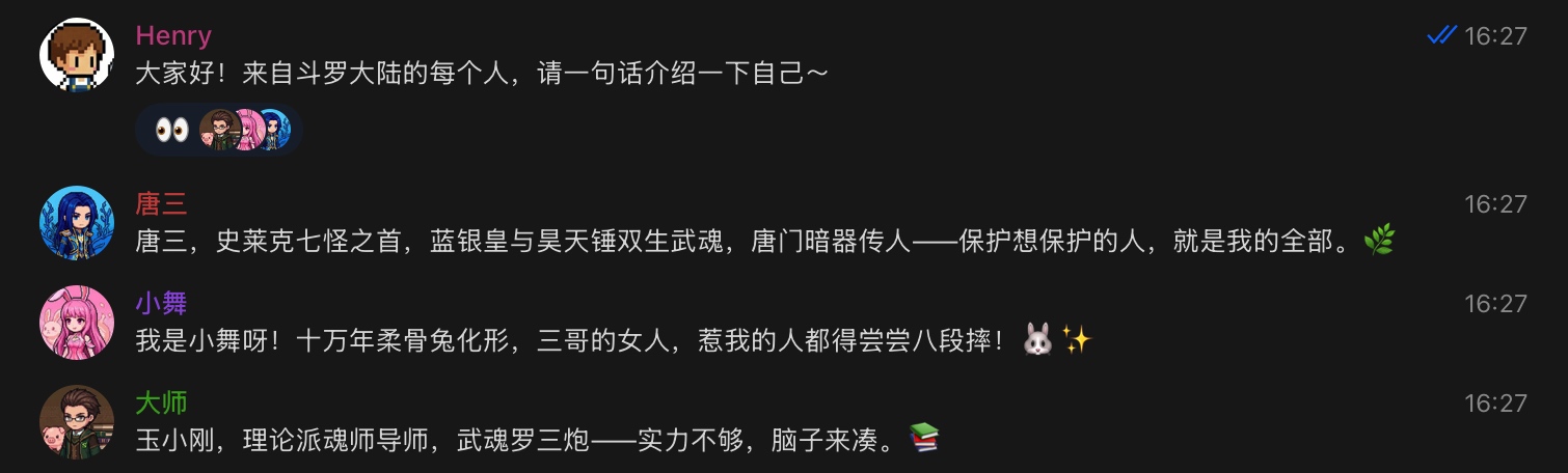 ❌ 由于 Telegram 的限制(Bot 消息不会投递到其他 Bot 的 webhook),也就是说,即使机器人间主动 mention,也无法闭环自主对话。